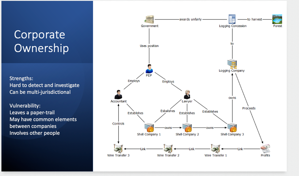That fount of all wisdom (the internet) attributes the saying that a picture is worth a 1,000 words to Napoleon (here). The self-crowned emperor was many things, but a harried anticorruption investigator or prosecutor trying to explain the links between a criminal’s wrongdoing and a corporation to a judge of less than genius caliber or a jury after the lunch break he was not. Had he ever been in such a situation, he would have realized he vastly understated a picture’s value.