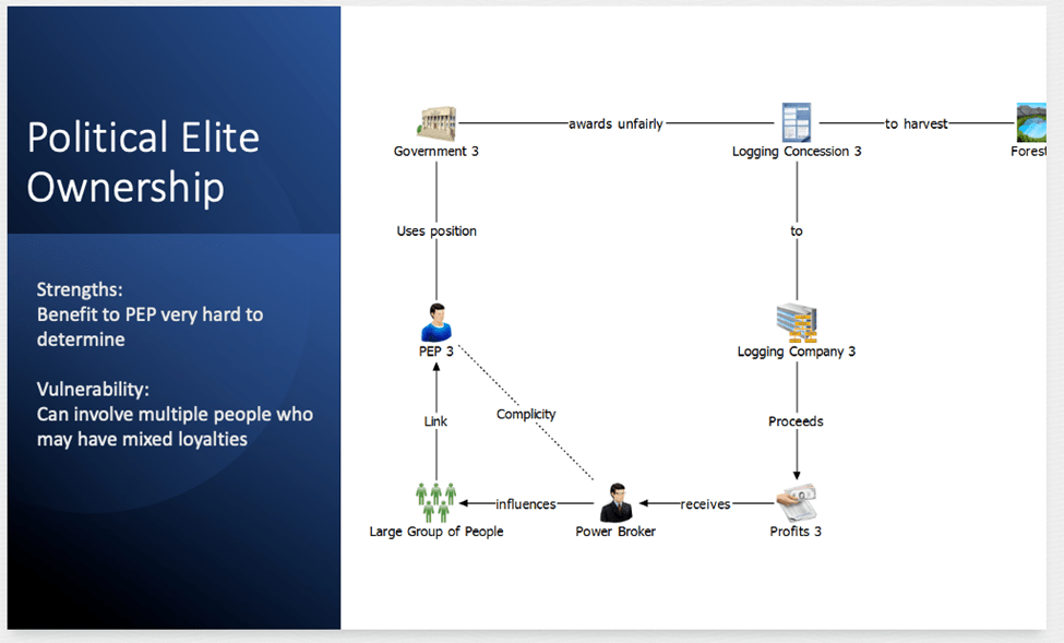 The diagrams below show why. Created by Targeting Natural Resource Corruption, they explain to those responsible for enforcing laws against poaching, illegal logging, and other crimes against the earth’s resources how a corporation obscures the relationship between these crimes and those behind them. For those like me, with no visual imagination or skill whatsoever, they are a godsend. Because they are easily reproducible and not copyrighted. Thanks to Targeting Natural Resources for making them readily available.